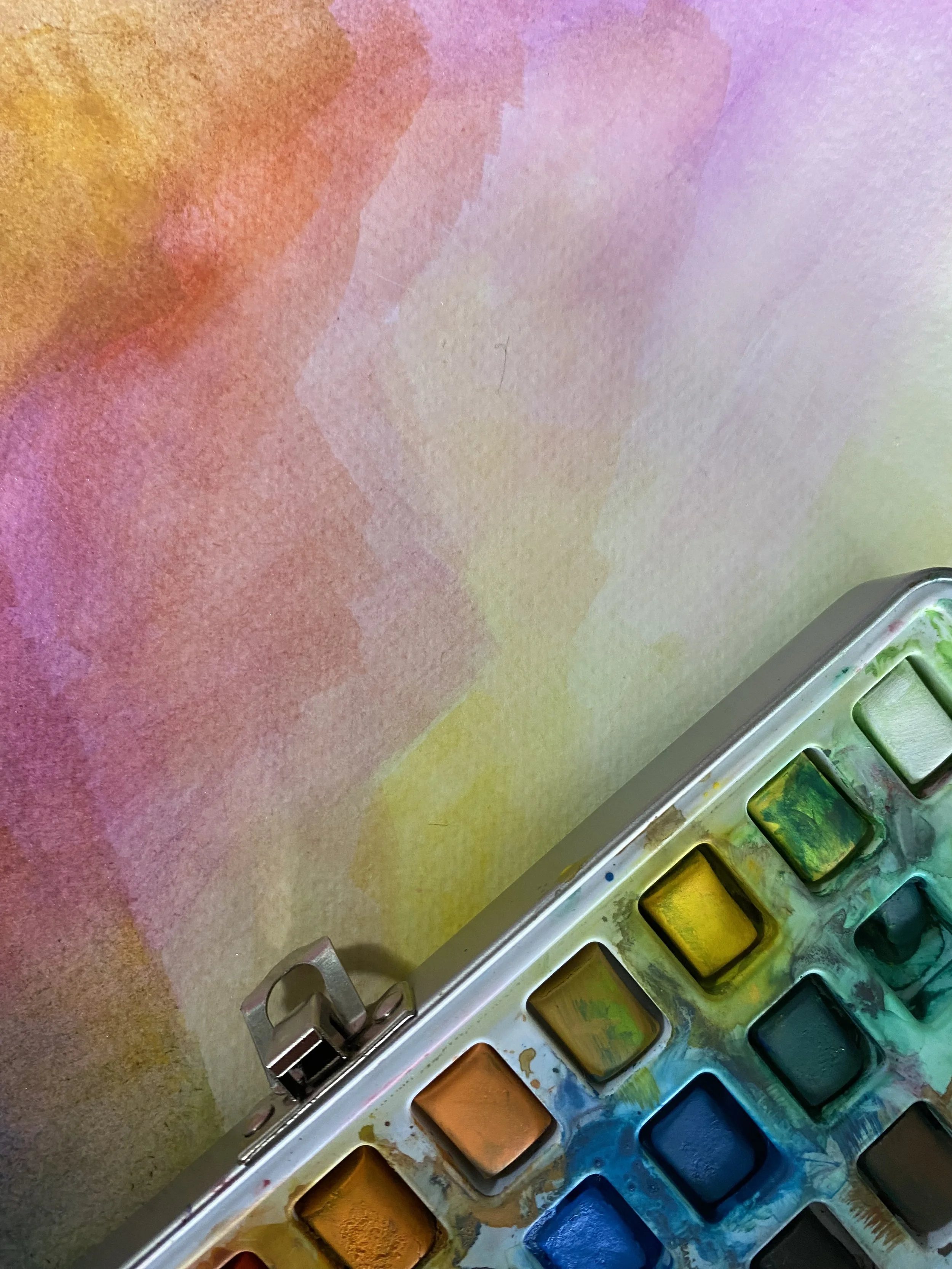 Nimm dir Aquarellpapier und ein paar Aquarellfarben.